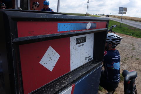 By Ben Nitkin on June 12, 2015 at 2:04 Look at all that hay! We've run across lots of old-style gas pumps. Lots of abandoned stations, too. You can tell you're in the middle of nowhere when the gas stations sell hard liquor. The biggest ice machine I've ever seen. It was the size of a small building and had a slot in the front for ice to come out. Today was really nice. The church we stayed at organized a bluegrass concert (sorry, but I didn't take photos) after a potluck dinner.
